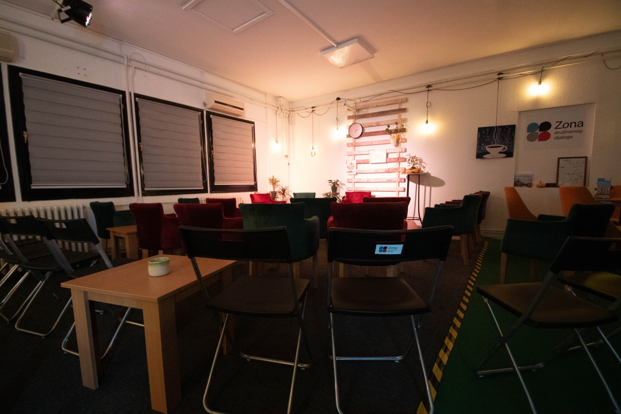 kafe klub Zona JEDINSTVENO MESTO U ZRENJANINU Udruženje ZONA DRUŠTVENOG DIJALOGA osnovalo je kafe klub u centru Zrenjanina.Prostor je uređen kao mesto pogodno za razgovor, predstavljanje i razmenu ideja, sticanje novih znanja i poznanstava, u opuštenoj atmosferi. centar grada 50 sedećih mesta projektor brz internet ketering mogućnost iznajmljivanja saznajte više Najnoviji događaji DogađajiRazgovorDejan Šoškić – Istine i zablude o ekonomskoj situaciji u Srbiji DebataDogađajiNebojša Milenković – Nije se srušila samo nadstrešnica, urušila se država DogađajiDijalog u paklu između Makijavelija i Monteskjea – javno čitanje DogađajiPromocija knjigePromocija knjige Srđana Cvijića “Vixere” DogađajiPredstavljanjeVinsko veče Pretraga događaja Debata (5) Događaji (32) Predstavljanje (1) Promocija knjige (6) Razgovor (1) Tribina (5) nAJGLEDANIJI VIDEO NA NAŠEM YOUTUBE KANALU dobrodošli u Zonu društvenog dijaloga POGLEDAJTE VIŠE SLIKA U GALERIJI
