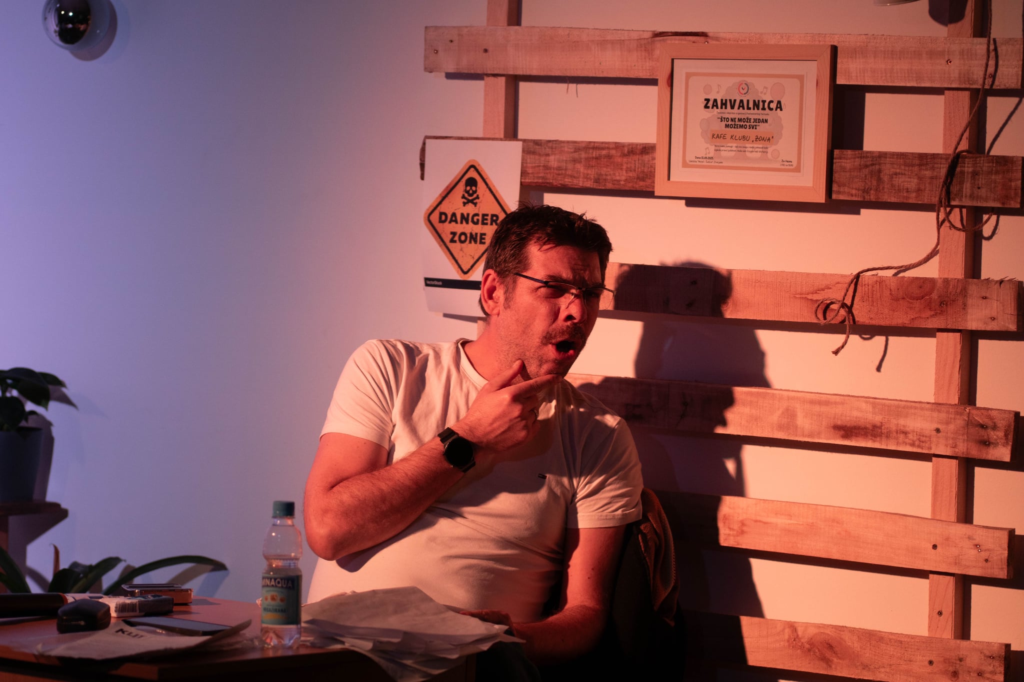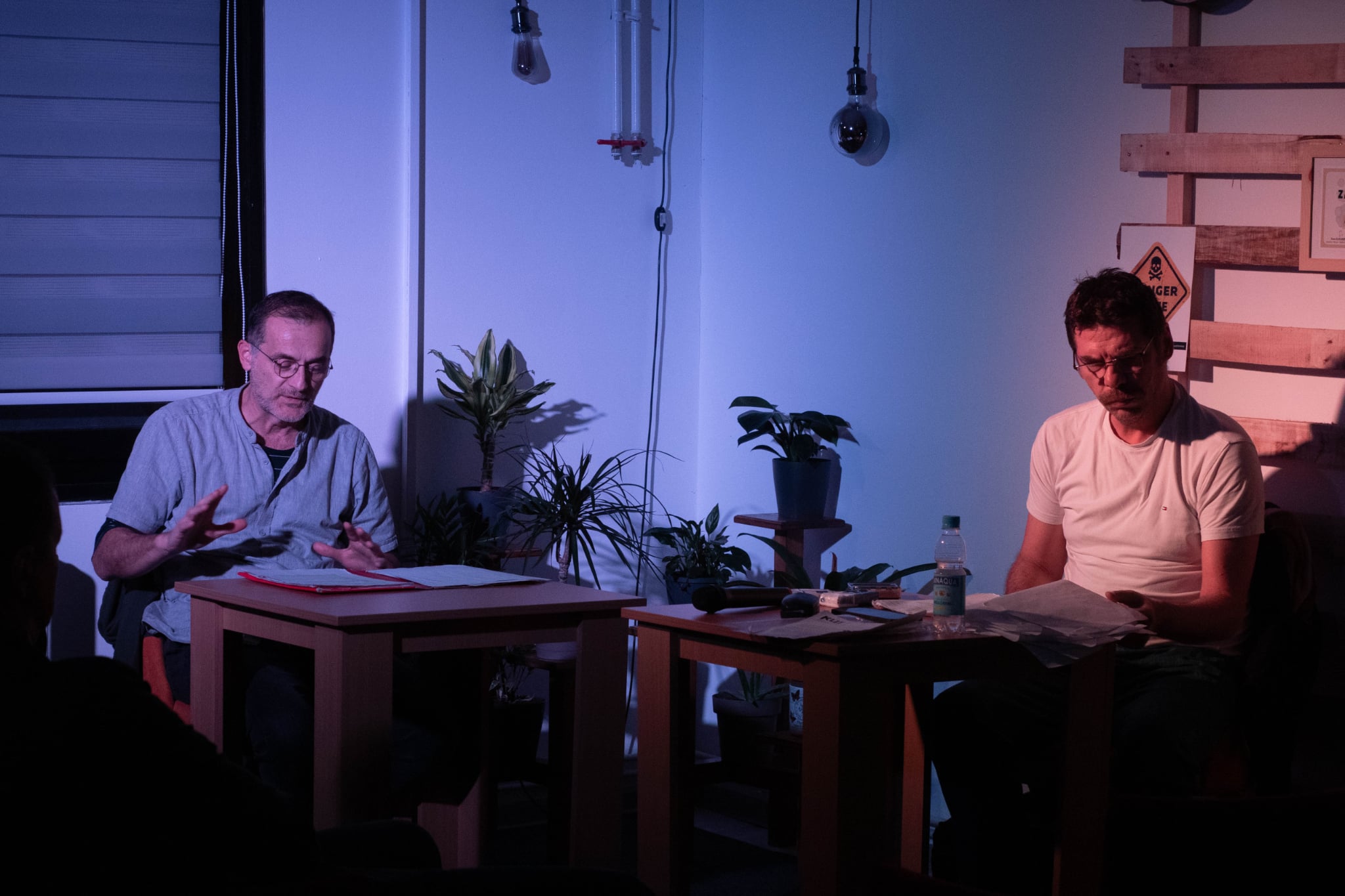 Glumci Miljan Vuković i Igor Filipović čitali su nam delove iz dela “Dijalog u paklu između Makijavelija i Monteskjea” pisca Moris Žolija. 👏🏻